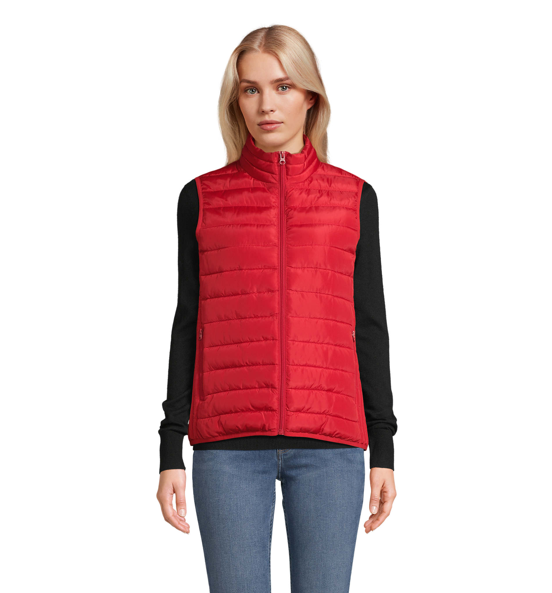 SOL'S STREAM BW WOMEN, MUJER, chaleco ligero tejido exterior y forro: 100% poliéster, acolchado: Plumón 100% poliéster. Cierre frontal y bolsillos laterales con cremallera de nailon a tono. Deslizadores de metal tono sobre tono con tiradores de cremallera negros de fantasía. Cuello alto y bies elástico a tono en las sisas y el dobladillo. Se suministra con bolsa de almacenamiento. Para la correspondencia de tallas, consulte la tabla de tallas en la sección de documentación del producto.