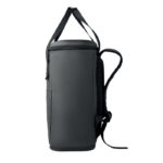 Mochila nevera de RPET 600D repelente al agua con aislamiento de espuma de PE y forro PEVA. espalda de malla acolchada, bolsillo frontal con cremallera y bolsillos laterales. Capacidad 20L.